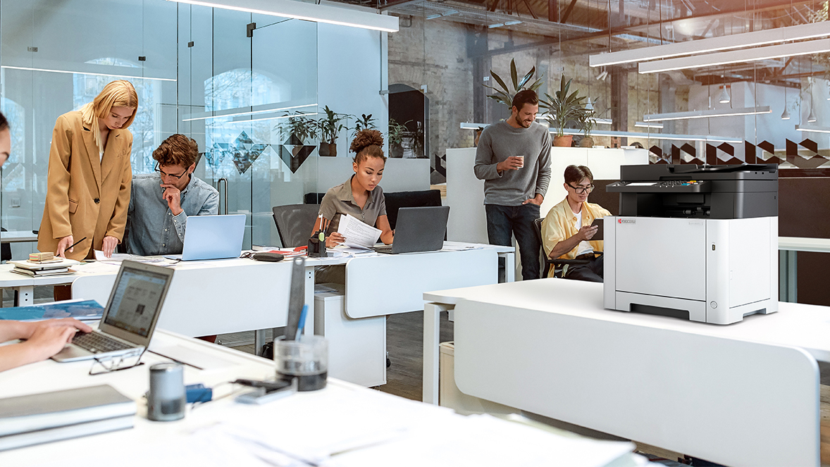 The ECOSYS MA2600cwfx features printing, copying, scanning, faxing, mobile printing, and cloud integration for seamless workflows.
